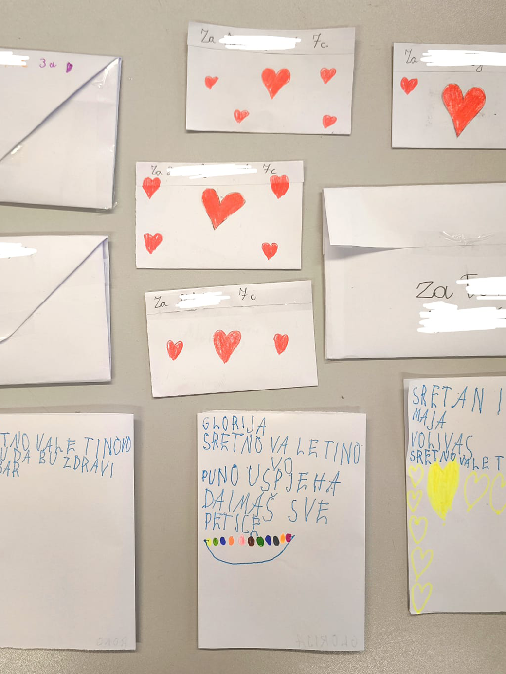 Ovaj smo tjedan imali radionicu na temu Valentinova, a korisnici su izrađivali srca od papira i na internetu smo našli ideju za društvenu igru s tim srcima, a onda smo okrenuli srca i napravili vlastiti Memory s motivima koje smo sami nacrtali olovkom (npr. pčele, oblaci, bubamare, sunca i sl.). Na kraju su se izrađivale čestitke za Valentinovo.