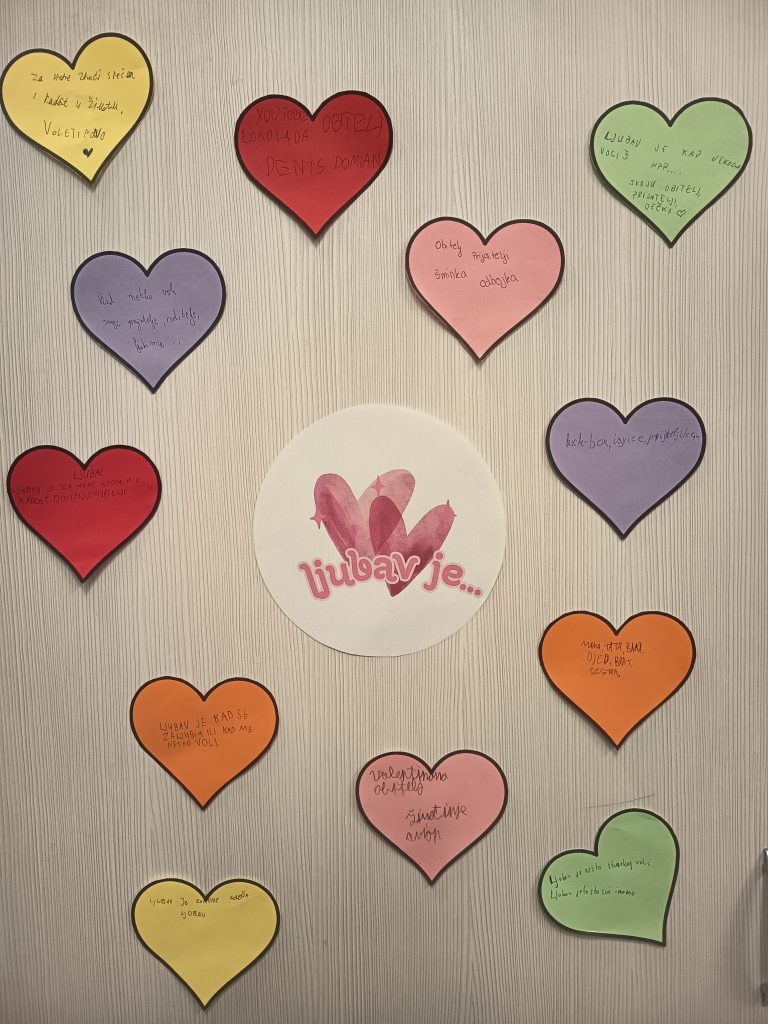 Obilježili smo i Valentinovo uz kreativno-zabavnu radionicu. Korisnici su izrađivali razne ukrase kako bismo ukrasili prostor te su ukrase međusobno razmjenjivali. Također su se prisjetili što za njih znači ljubav. Svoje odgovore su pisali na papiriće koje smo zalijepili pa su mogli međusobno prokomentirati svoje odgovore.