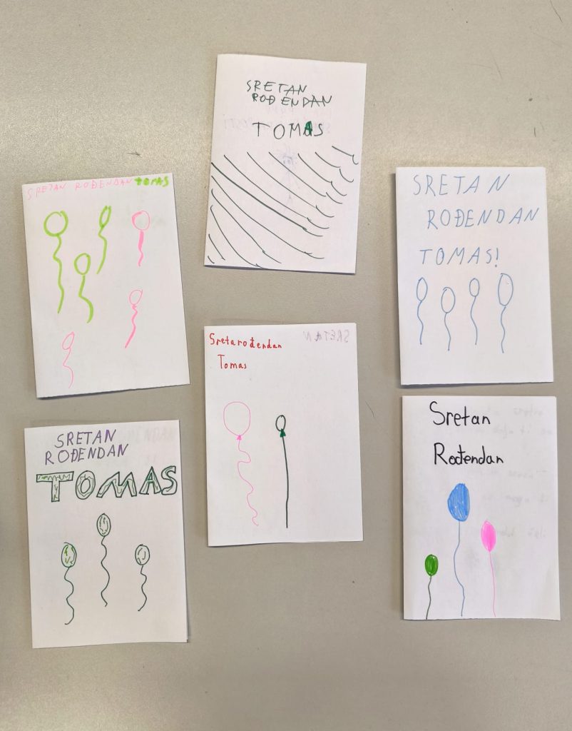 Predale smo mu rođendanski poklon (otvorio ga pred nama i pokazao ostalim korisnicima), ostali su ga korisnici iznenadili rođendanskom pjesmom i izradili mu rođendanske čestitke, on je donio grickalice pa smo se svi počastili.