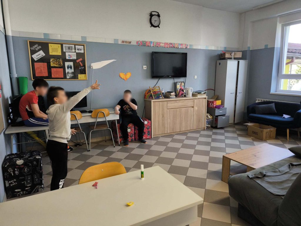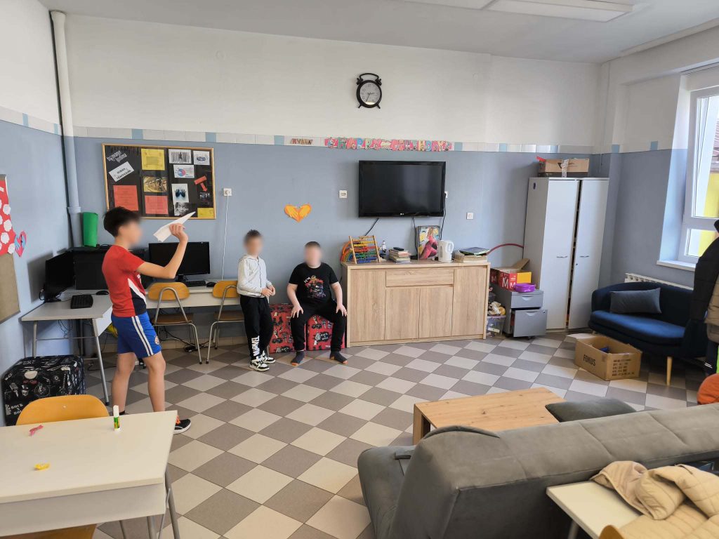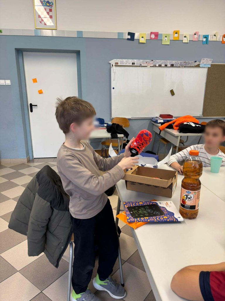 U učionici smo vježbali preciznost kroz igru – avione od papira pokušavali su ubacili u kartonsku kutiju.
