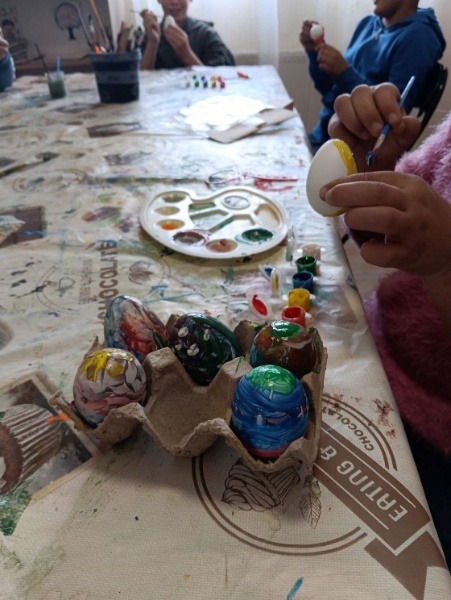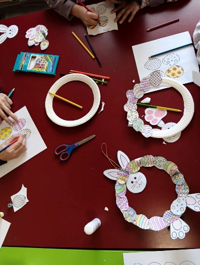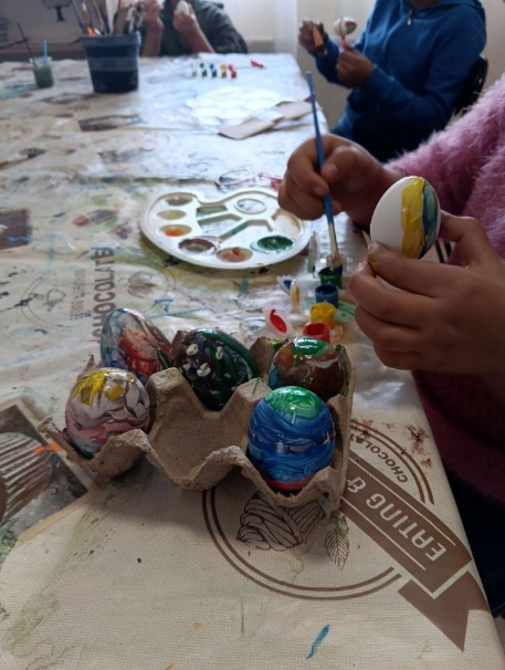 Uoči uskrsnih blagdana održali smo kreativno-edukativnu radionicu za korisnike ispunjenu bojama i maštom. Kroz zajedničko druženje, korisnici su imali priliku razvijati svoju kreativnost bojanjem uskršnjih jaja gdje je svako jaje postalo malo umjetničko djelo! Nakon toga, korisnici su izrađivali uskrsne vjenčiće od papirnatih tanjurića i jaja koje su sami bojali i ukrašavali.