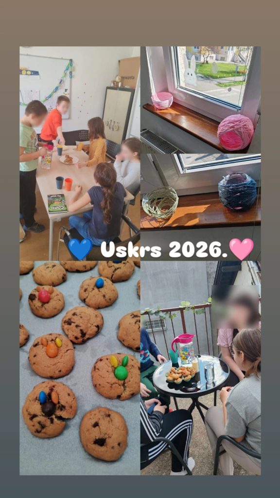 Također, ovaj smo tjedan izrađivali Uskrsne košarice od vune i balona kao i zečiće od papirnatih tanjura. Isto tako, djeca su pekla kekse koje su potom ukrasili bombončićima u obliku zečića u kojima su kasnije uživali na novoj terasi našeg boravka.