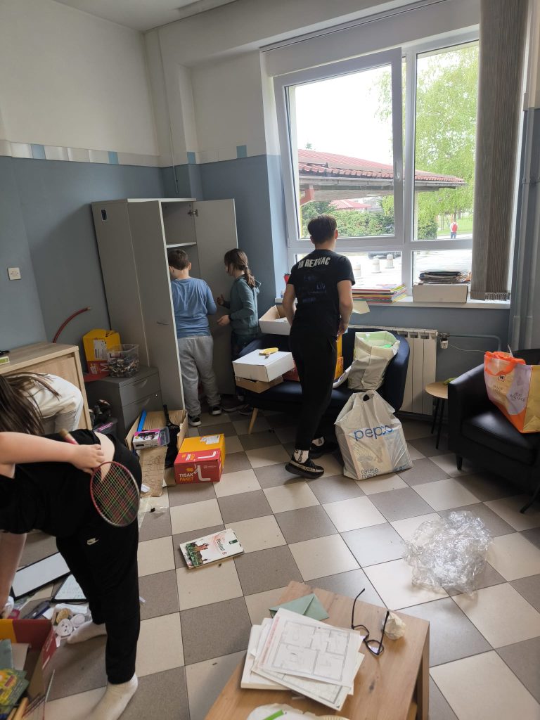 Pomogli su nam pri spremanju igračaka, knjiga, radnih materijala i sl. u vrećice i kutije radi preseljenja u novi prostor (bili su jako vrijedni 🙂)