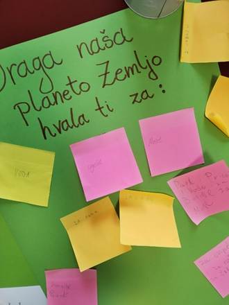 Odgajateljice su s korisnicima razgovarale o dobrobitima koje nam Zemlja daje, a korisnici su izrađivali plakat na koji su lijepili Post-it papiriće na koje su napisali za što su zahvalni planeti Zemlji.