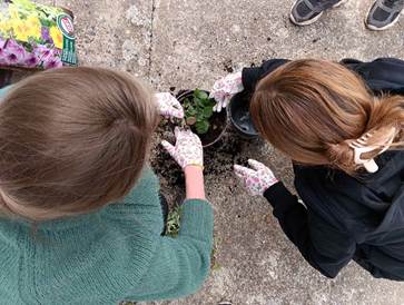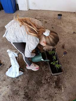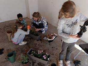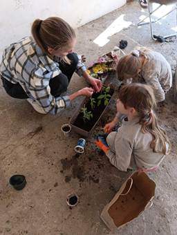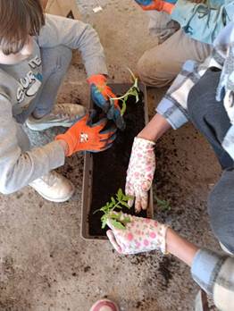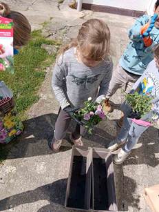 Nakon toga su u dvorištu sadili biljke – jagode, ružmarin, kamilicu, mentu, rajčice i cvijeće.