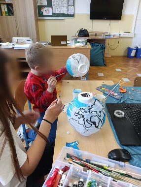 Djeca i volonteri su sudjelovala u oslikavanju lampiona koje su bojama i crtežima pretvarala u prikaz globusa. Kroz razgovor su učila o kontinentima, morima i važnosti očuvanja prirode. Aktivnost je poticala maštu, preciznost u radu te zajedničko druženje.